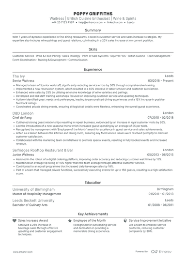 4 Banquet Server CV Examples & Free Templates For 2025 - CVDesigner.ai