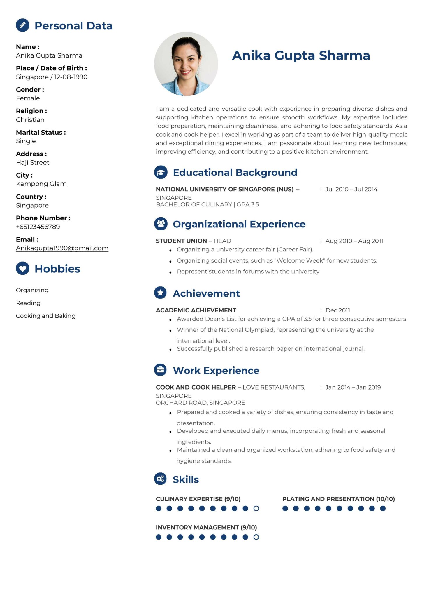CV Example for Cook and Cook Helper - Blog BikinCV.co