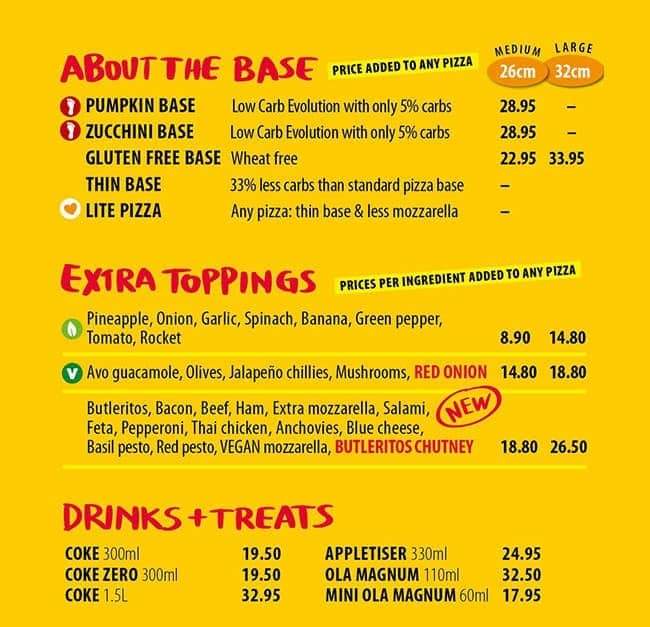 Butlers Pizza Menu South Africa - South Africa Menu Prices