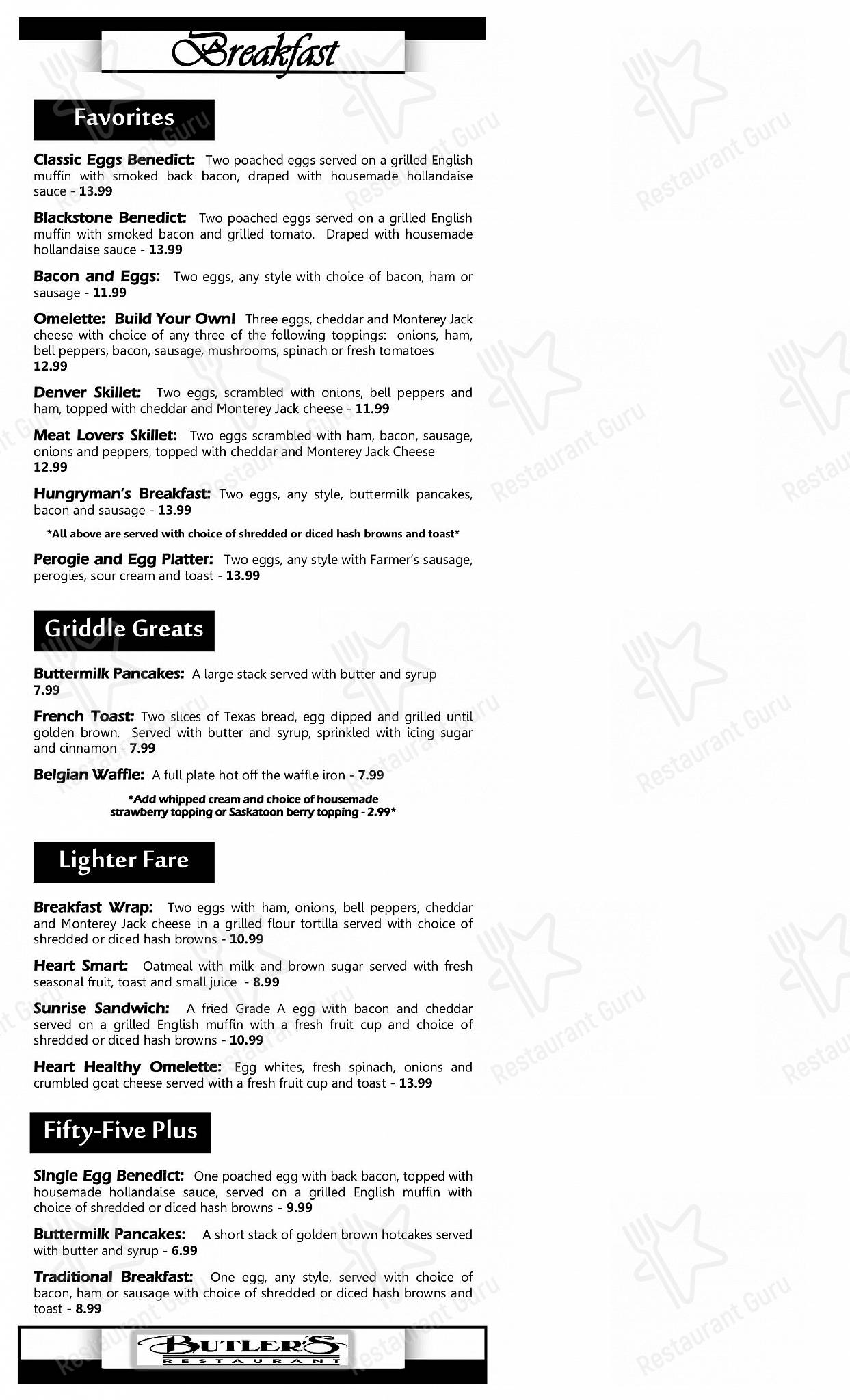 Online Menu of Butler's Restaurant, Ingleside, Ontario, K0C 1M0 - Zmenu