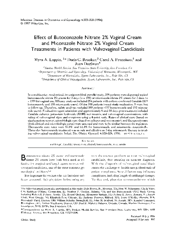 (PDF) Effect of Butoconazole Nitrate 2% Vaginal Cream and Miconazole ...