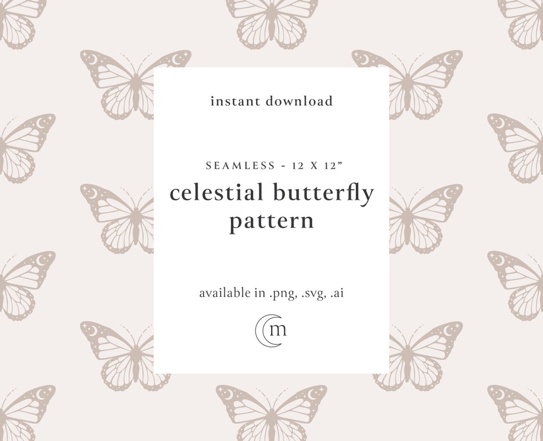 Seamless Celestial Butterfly Digital Pattern, Hand Drawn Moon Stars and ...