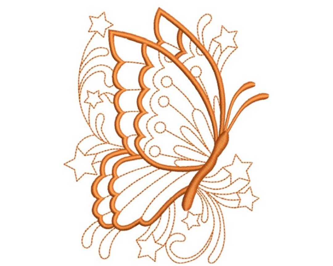 Butterfly and Stars - Machine Embroidery Design, Butterfly Outline ...