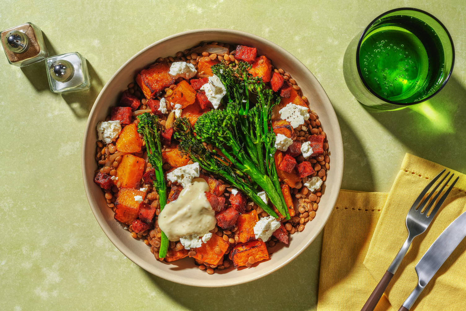 Double Chorizo and Purple Sprouting Broccoli Lentil Bowl Recipe ...