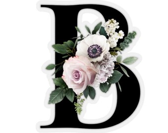 B Floral Black Letter Vinyl Sticker, Car Vinyl Decal, Monogram Planner ...