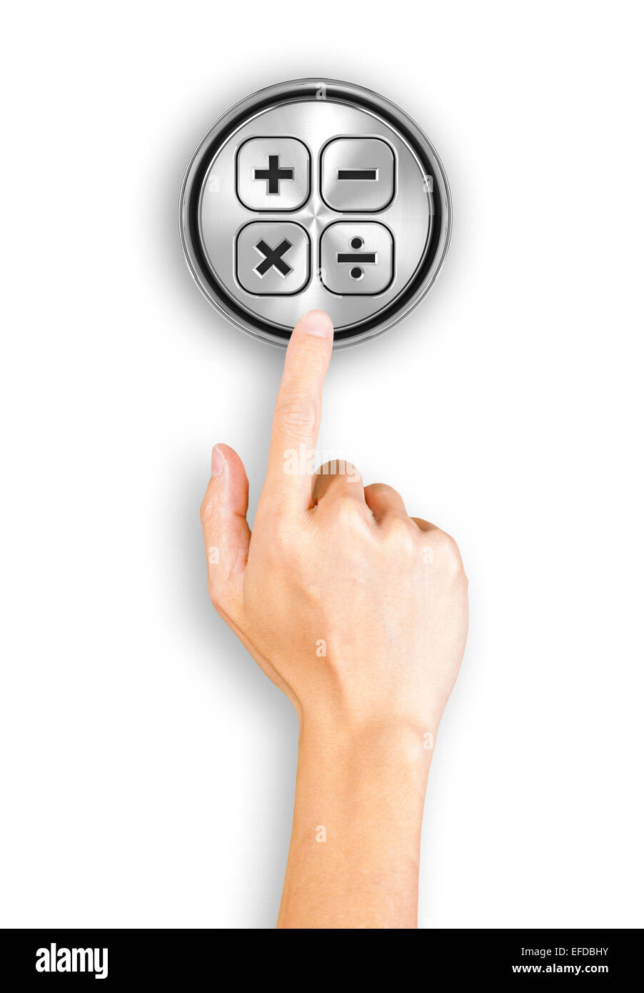 Clicking a button with calculation sign Stock Photo - Alamy
