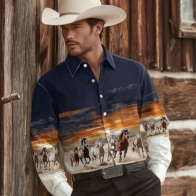 Men's Animal Horse Sunset Shirt Western Shirt Cowboy Shirt Long Sleeve ...