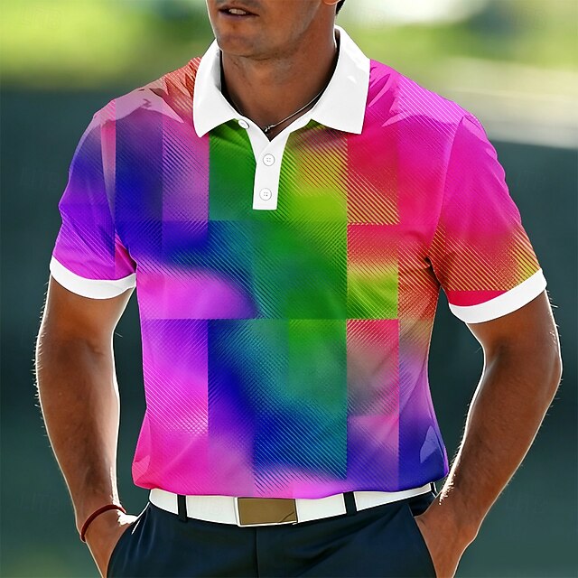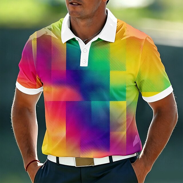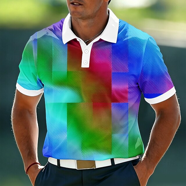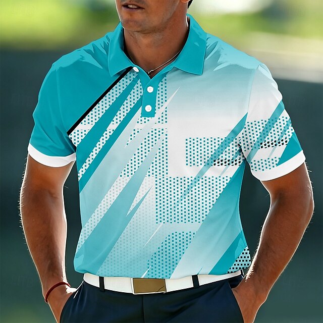 Men's Geometic Polo Shirts Short Sleeve Polo Shirts Lapel Casual ...