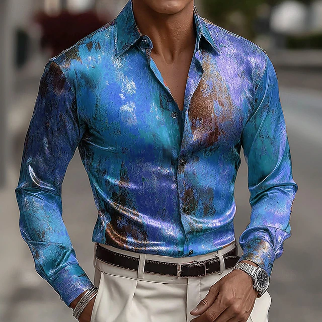 Men's Colorful Tie Dye Print Satin Shirt Prom Shirt Casual Dress Shirt ...