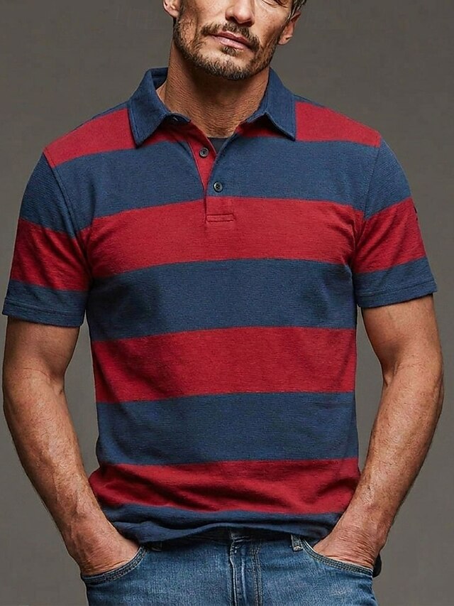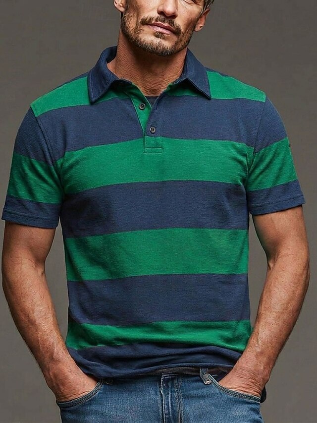 Men's Horizontal Stripes Rugby Polo Short Sleeve Polo Shirts Lapel ...