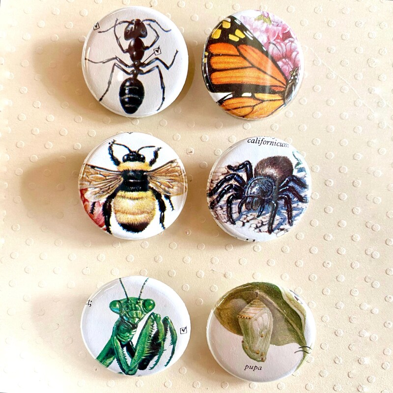 Set of 6 Random Upcycled Pin Back Buttons Insects Bugs Recycled Vintage ...