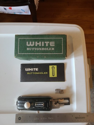 Vintage White Rotary BUTTONHOLER Sewing Machine Attachment with manual ...