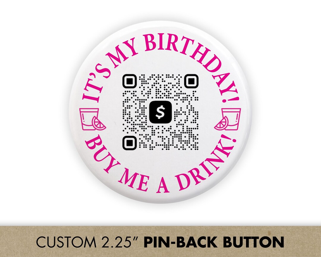 It's My Birthday, Buy Me a Drink QR Code Buttons, 21st Birthday Party ...