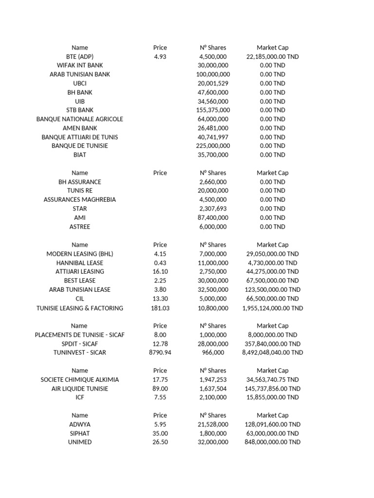 La BVMT publie la répartition des titres de capital en compartiments et ...