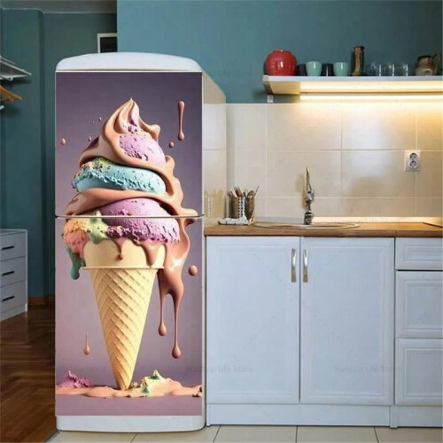 (BXT-018, 60x180cm(cut 2pcs)) Ice Cream Printed Refrigerator Door Mural ...