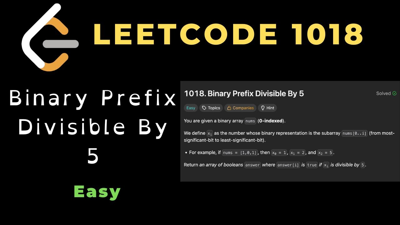 Binary Prefix Divisible By 5 | Important Things To Learn | Leetcode ...