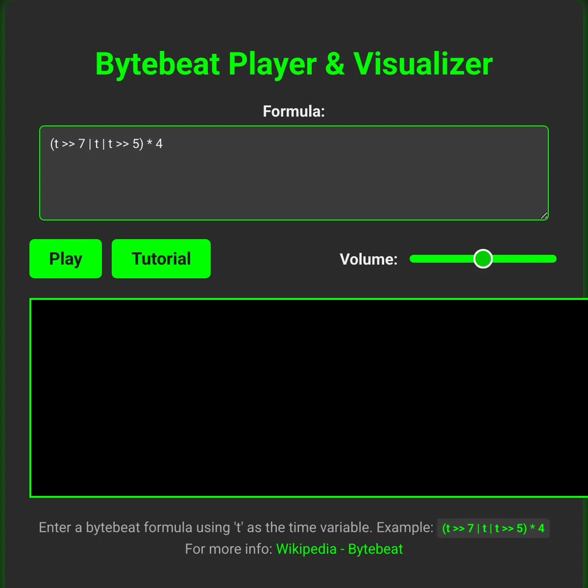 Bytebeat Visualizer & Player (Algebraic Syntax)