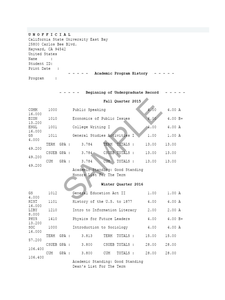 Unofficial Transcript | PDF