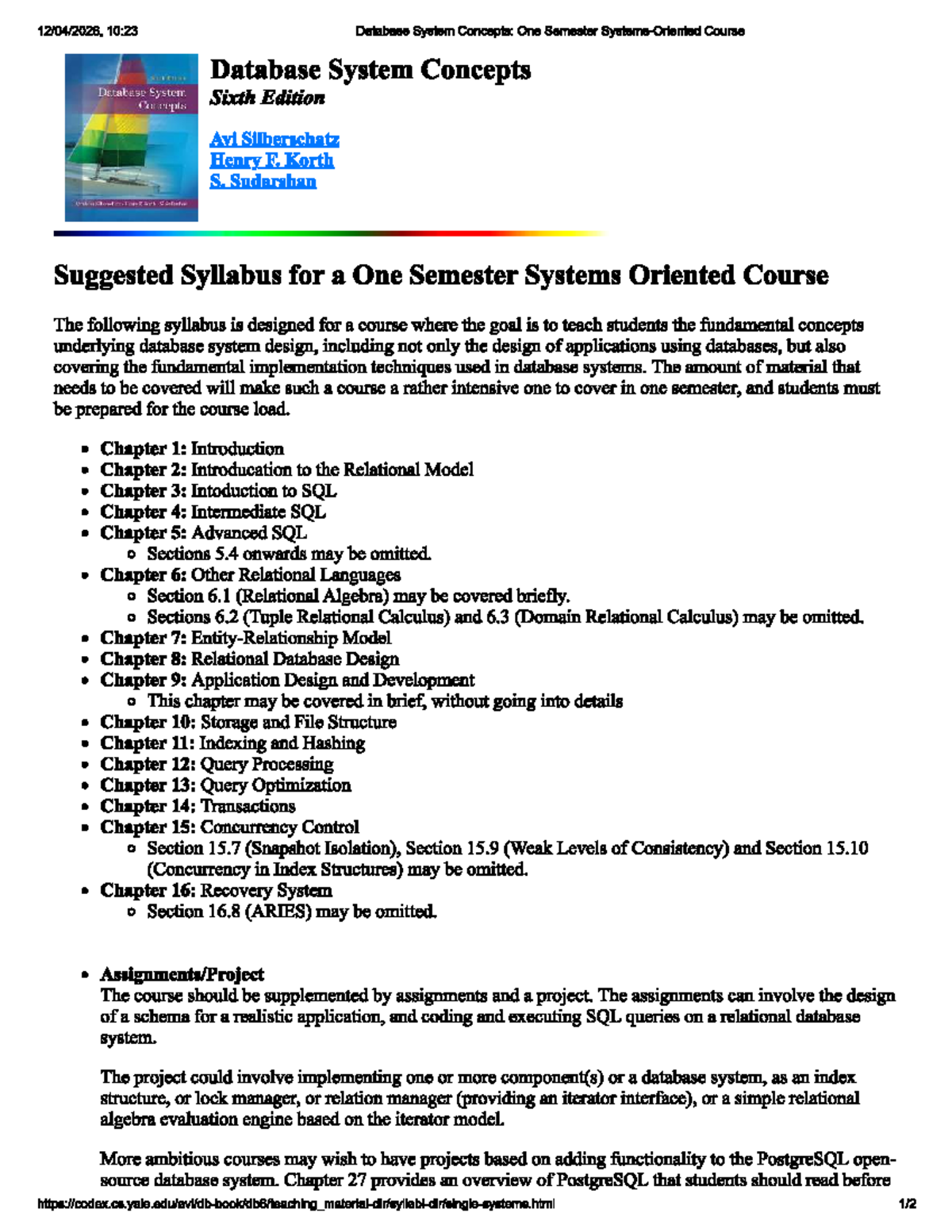 10:23 Database System Concepts: One Semester Course Syllabus - Studocu