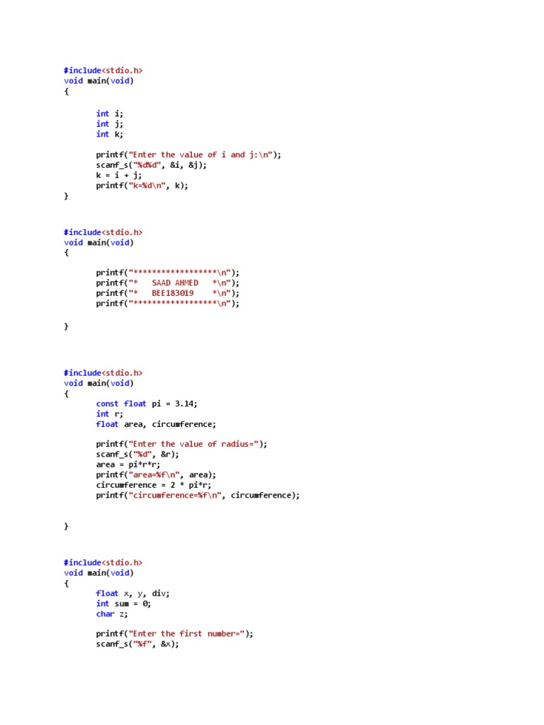 A Collection of C Code Examples Demonstrating Basic Input/Output ...