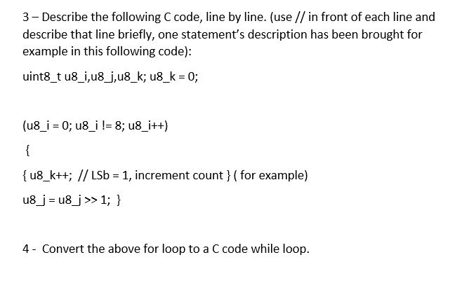 Solved 3- Describe the following C code, line by line. (use | Chegg.com