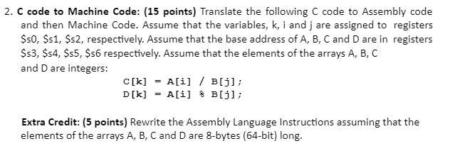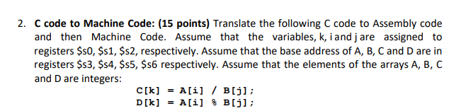 Solved 2. C code to Machine Code: (15 points) Translate the | Chegg.com