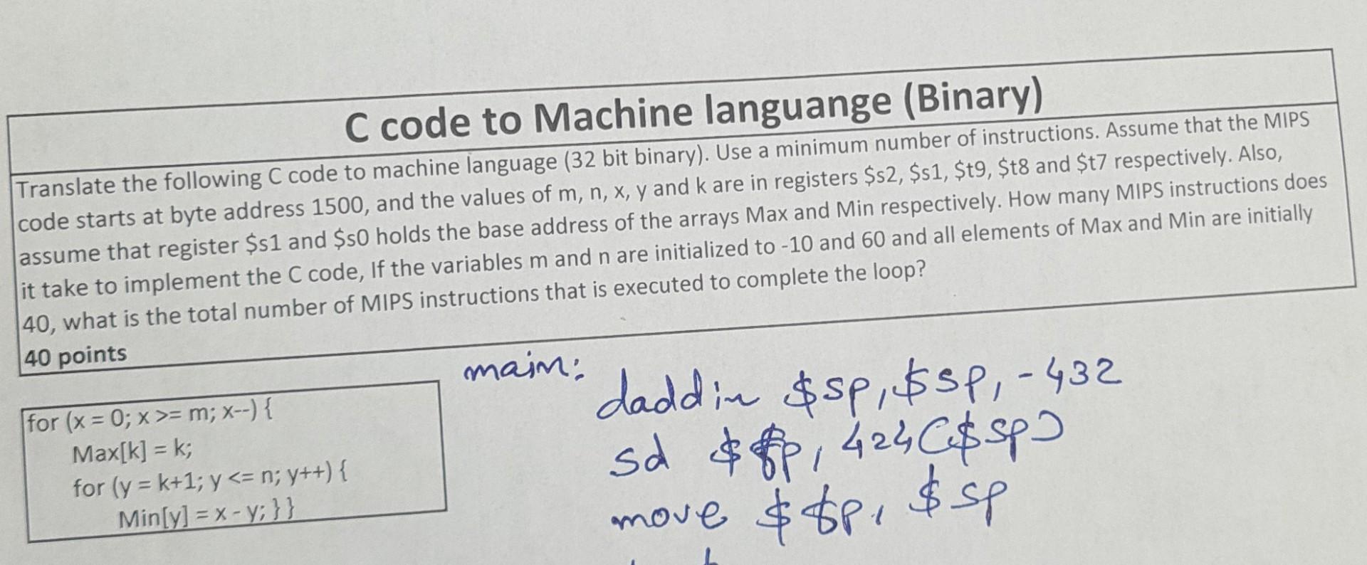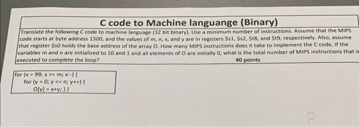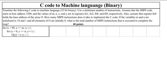 Solved C code to Machine languange (Binary) Translate the | Chegg.com