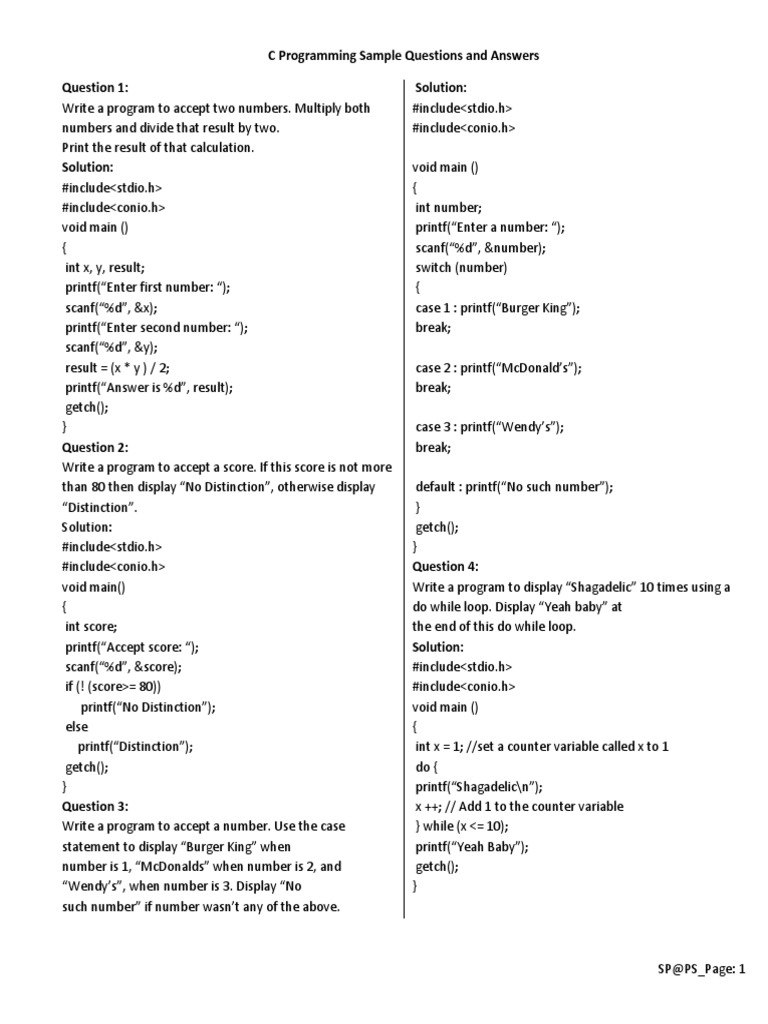 C programming Basic Questions and Answer - C programming Basic Question ...