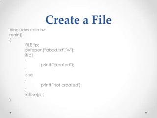Programming C- File Handling , File Operation | PPTX | Operating ...