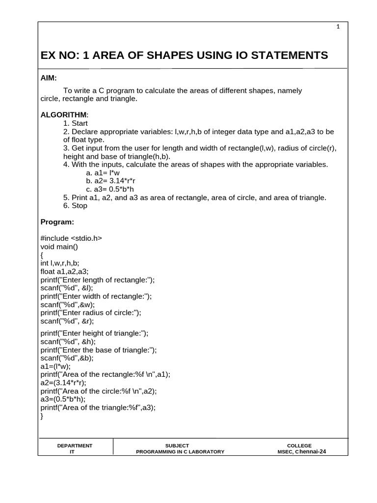 Programmin C Lab Manual | PDF | Area | Multiplication