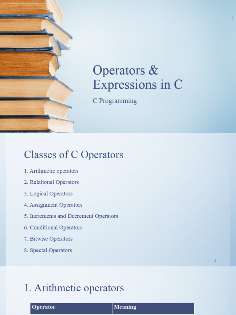 C Operators Guide - Arithmetic, Assignment, Logical, Bitwise | PPT