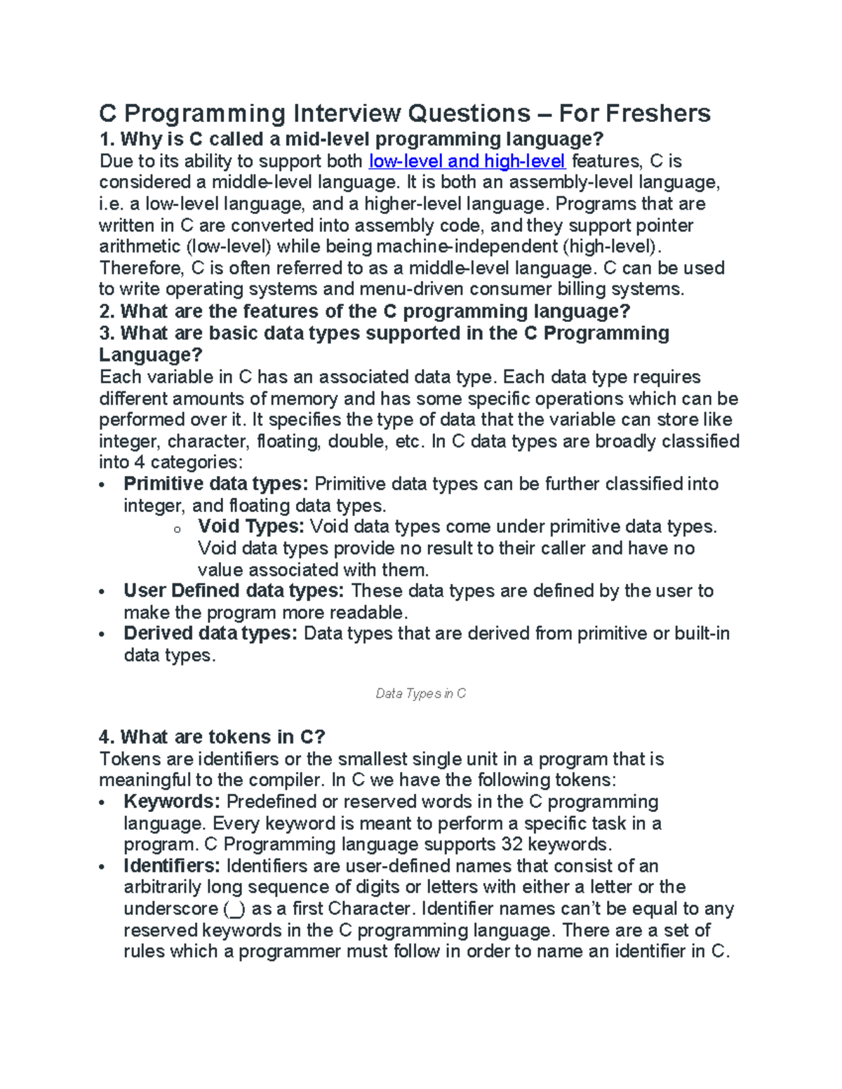 C Programming Interview Questions - 1) What is C language? C is a mid ...