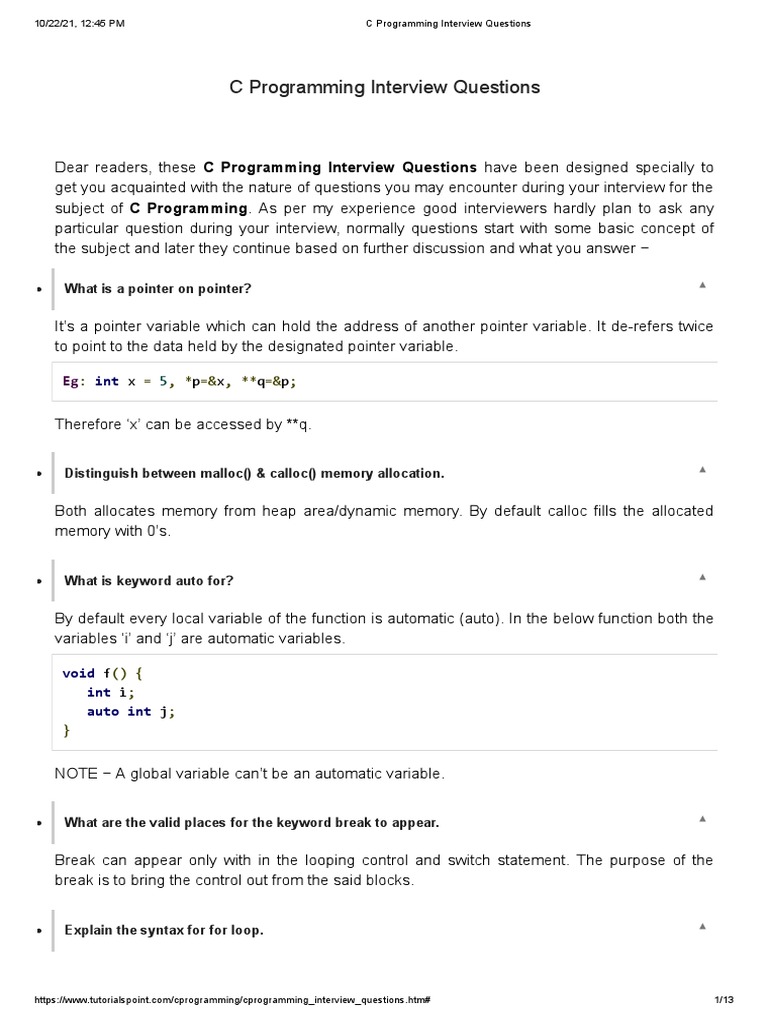C Programming Interview Questions - Tutorialspoint - C Programming ...