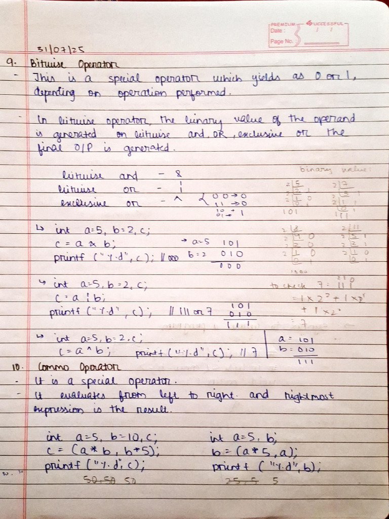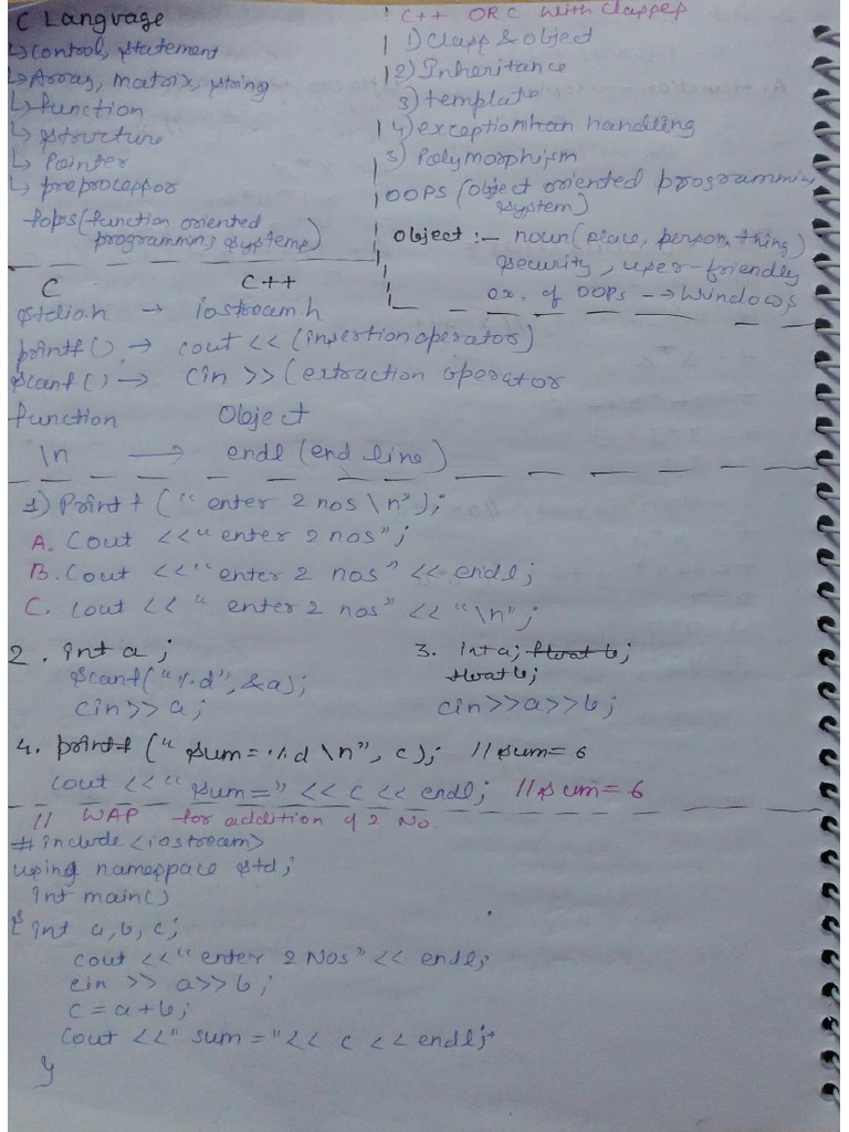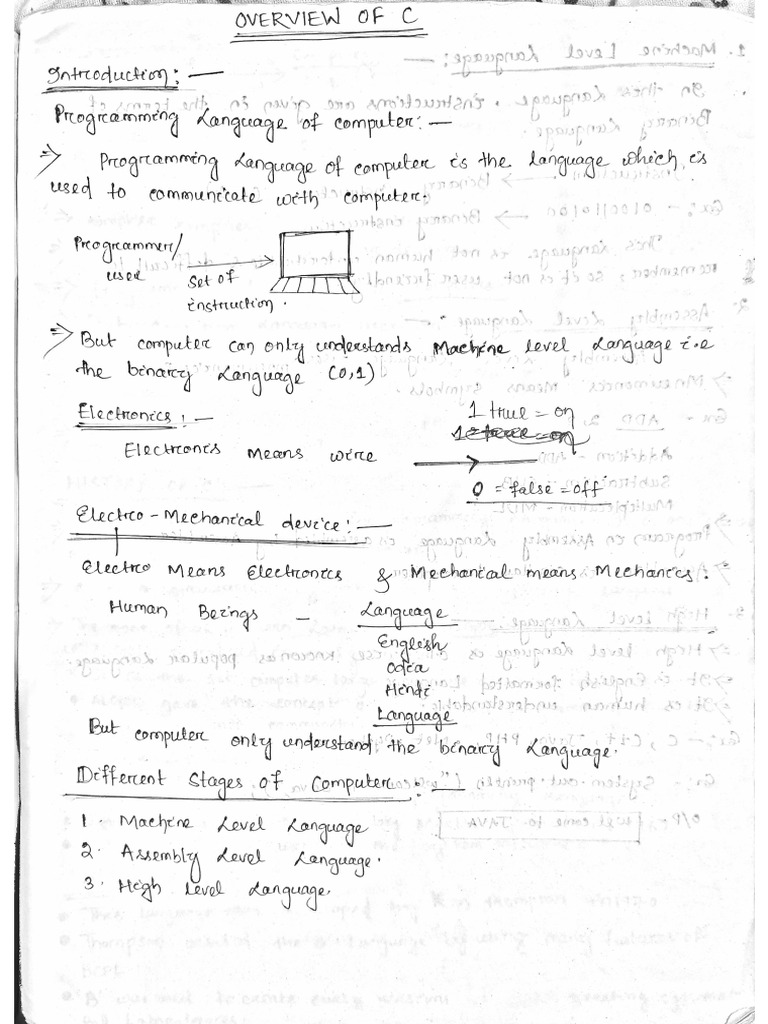 C Programming Language (Handwritten) Study Notes Free PDF - CSE/IT