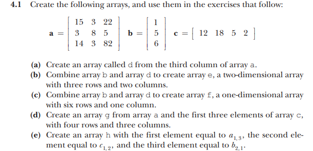 Solved 4.1 Create the following arrays, and use them in | Chegg.com