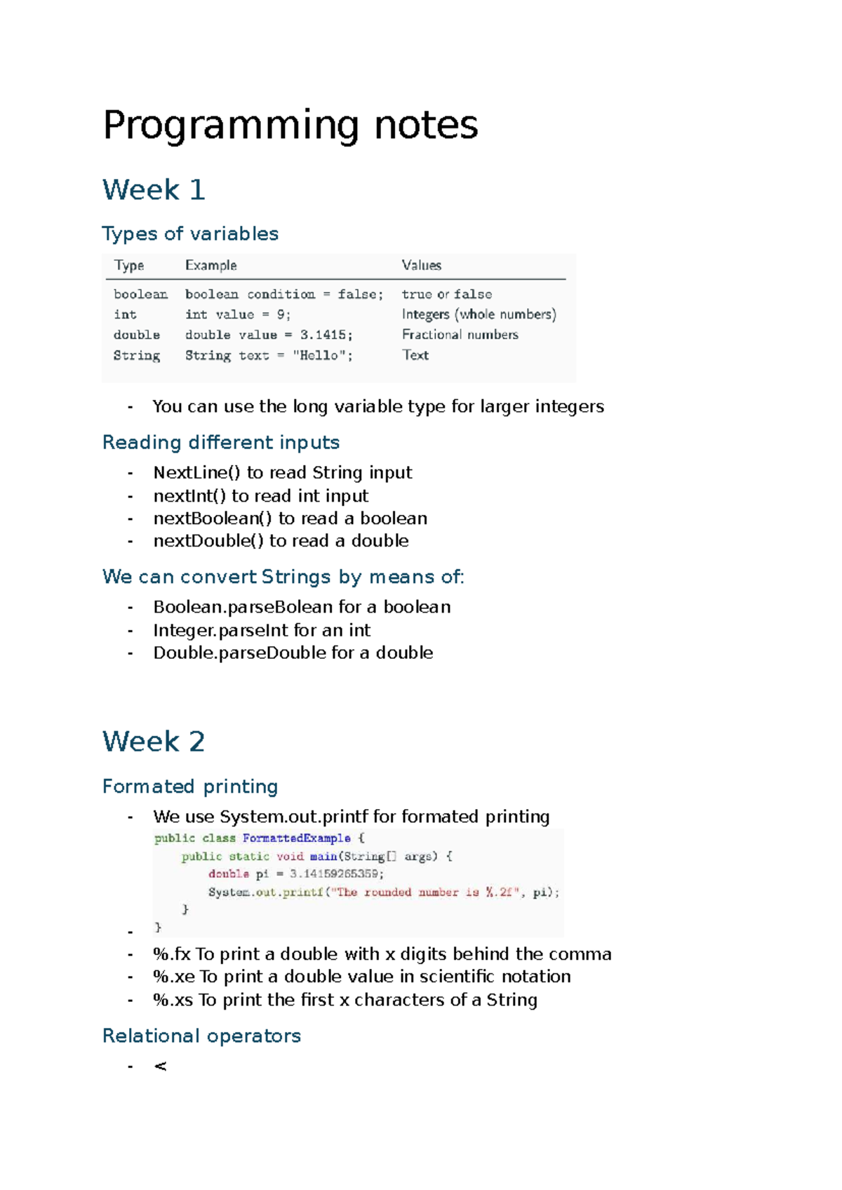 Programming Notes: Week 1 & 2 - Variables, Loops, and Objects - Studeersnel