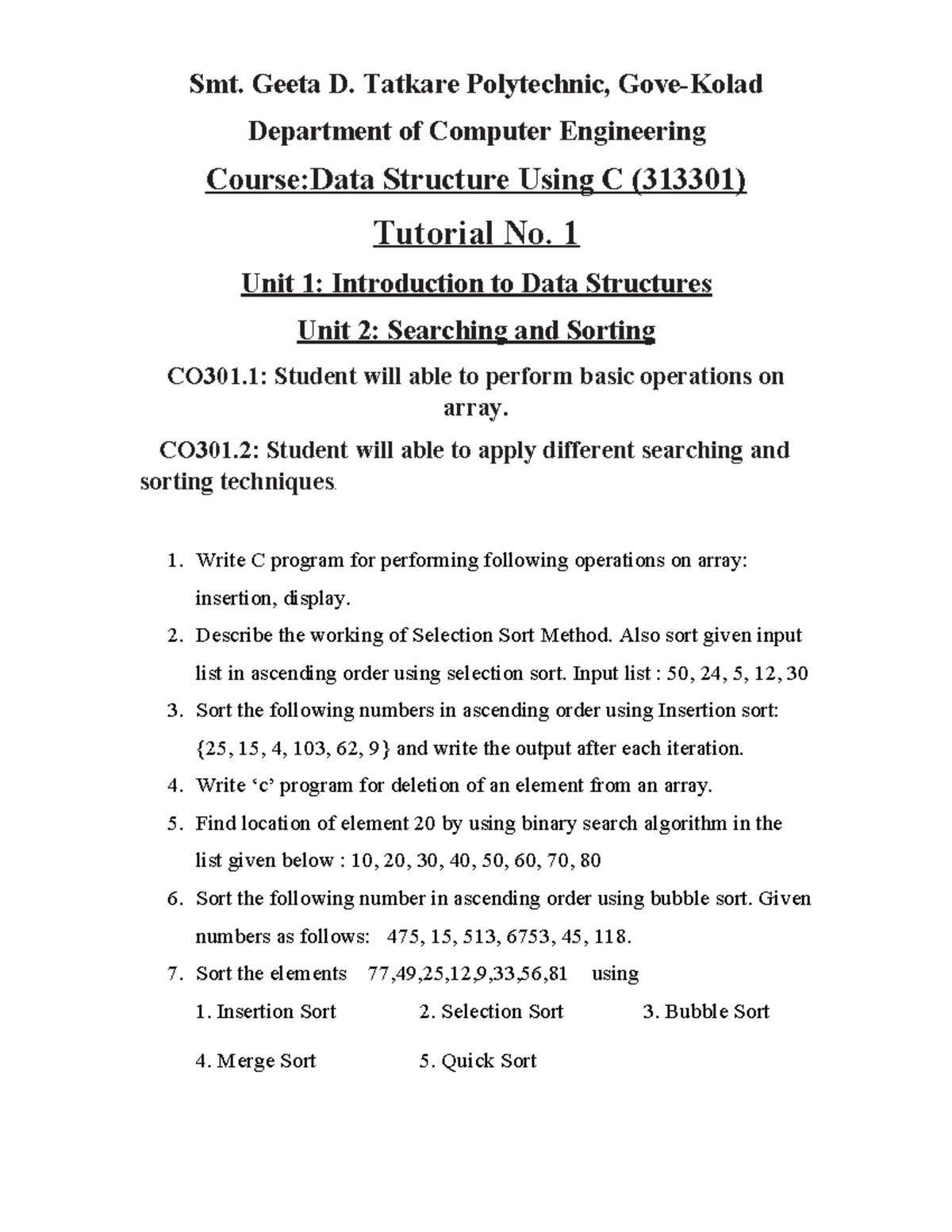 Data Structure Using C (313301) - DSU 3K Tutorial Questions - Studocu