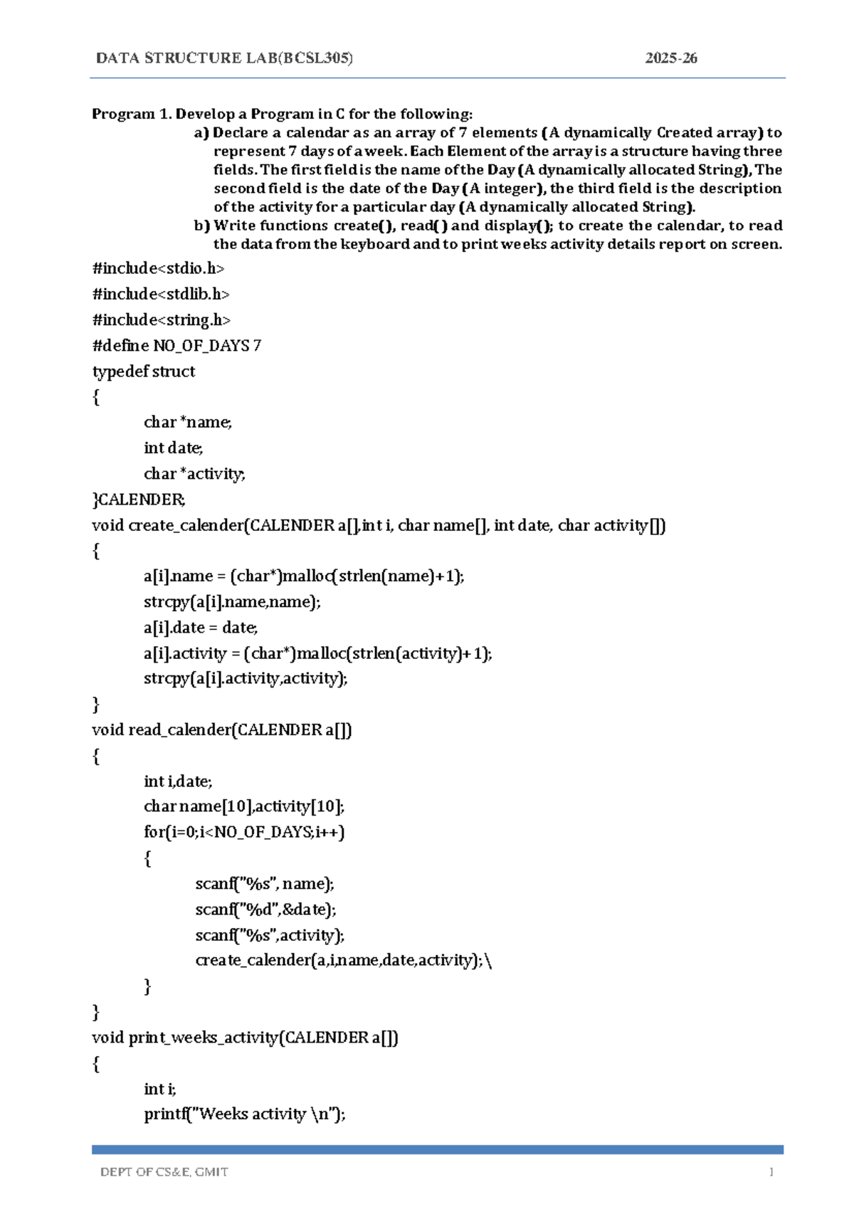 C Practical Projects and Programs (BMC151) - Studocu