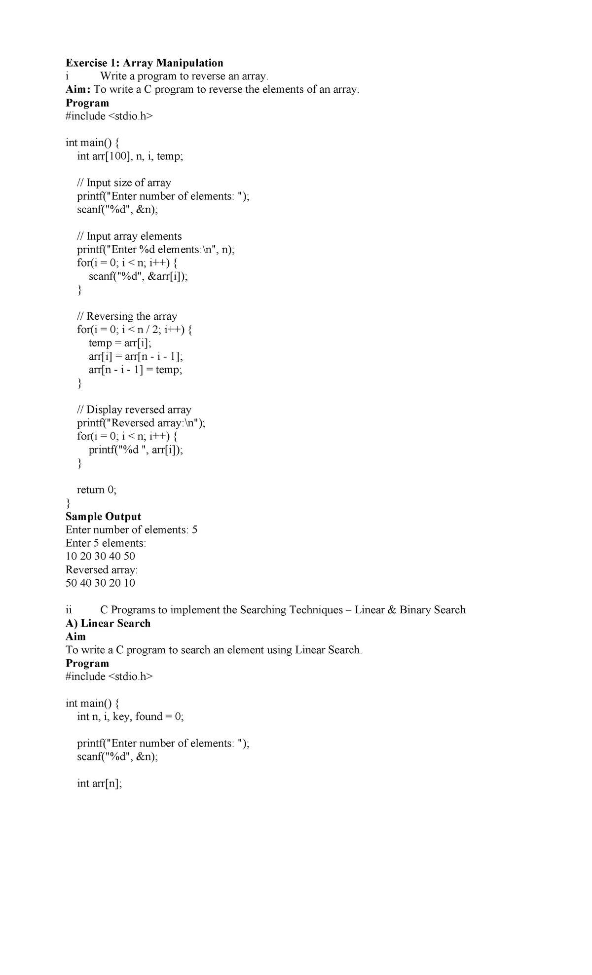 C Programming Exercise 1: Array Manipulation Techniques - Studocu