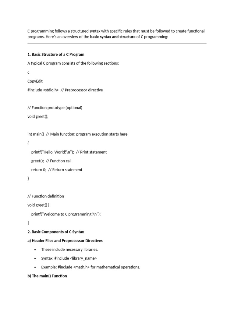 C Programming - Basic Syntax and Structure | PDF | C (Programming ...