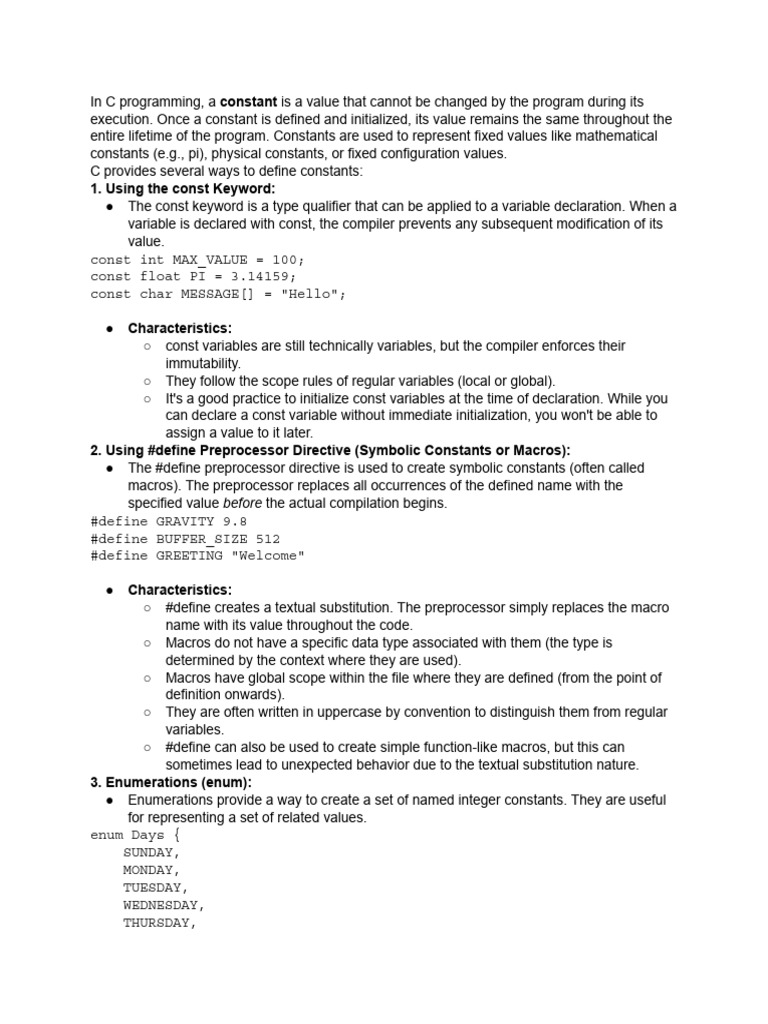 C Programming Constants Guide | PDF | String (Computer Science ...