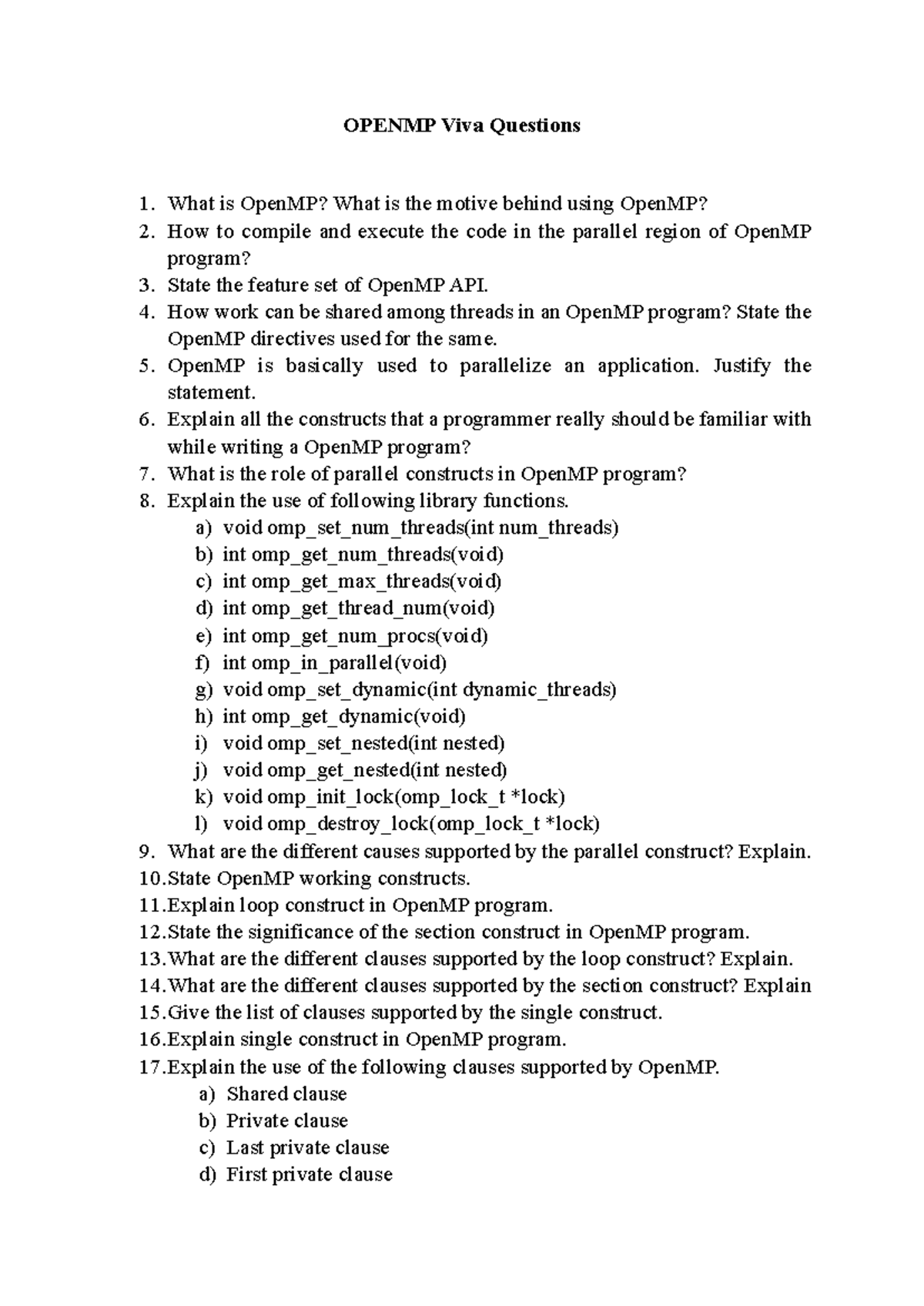 OpenMP Viva Questions: Key Concepts and Constructs - Studocu