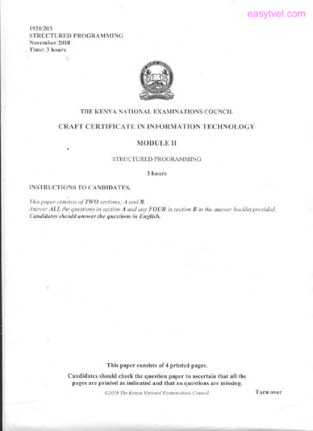 2018 Nov - Structured Programming Exam Paper (Craft Cert IT) - Studocu