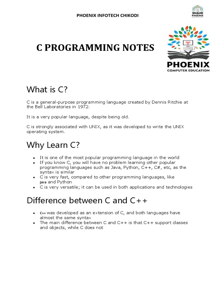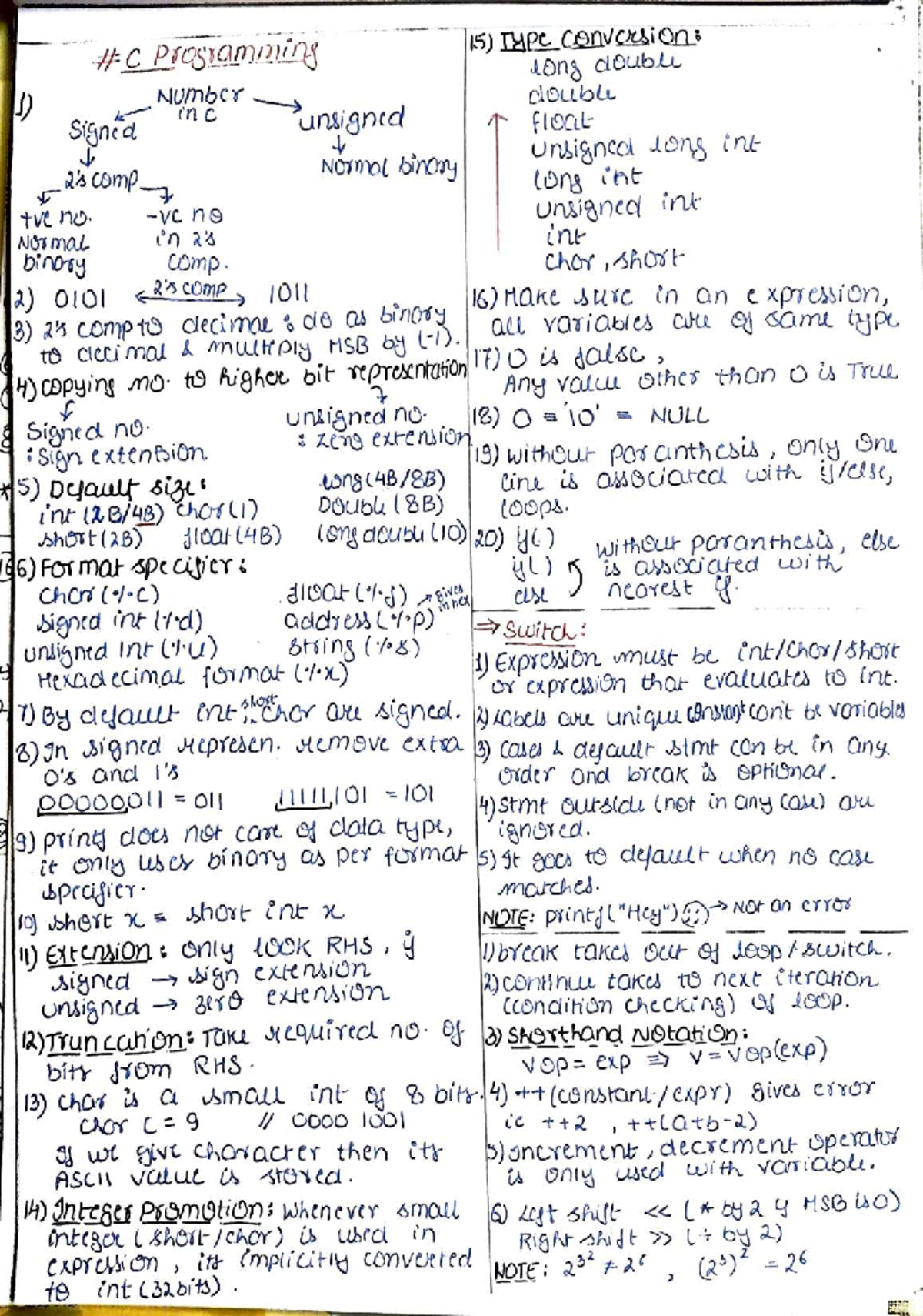C-Programming Short Notes: Key Concepts and Techniques - Studocu