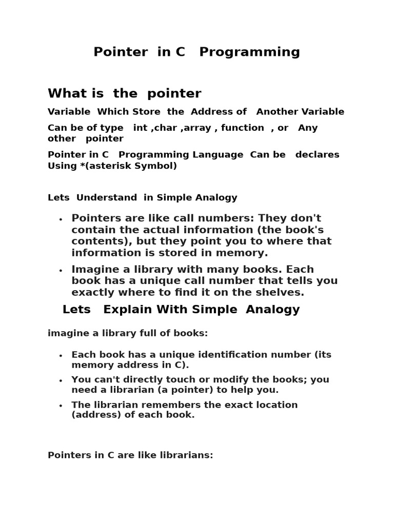 C Programming: Introduction to Pointers - Key Concepts and Usage - Studocu