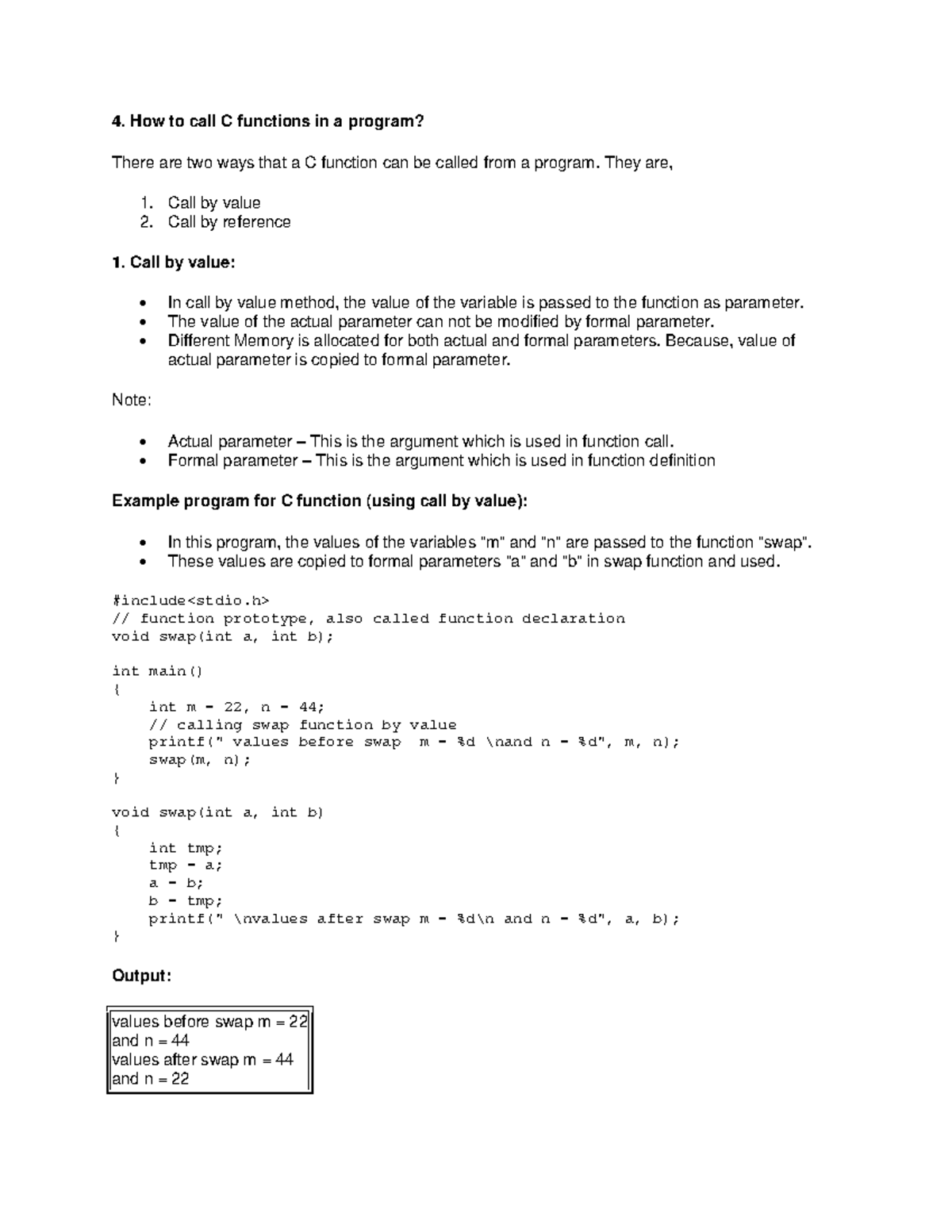 C Programming - Lecture Notes on Calling Functions and Pointers - Studocu