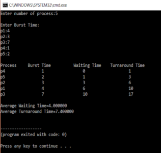 Shortest Job First Scheduling Program in C++ With Gantt Chart