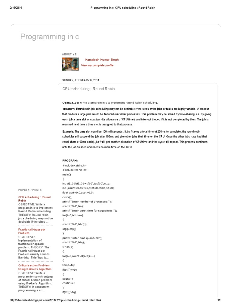 Programming in C - CPU Scheduling - Round Robin | PDF | Scheduling ...