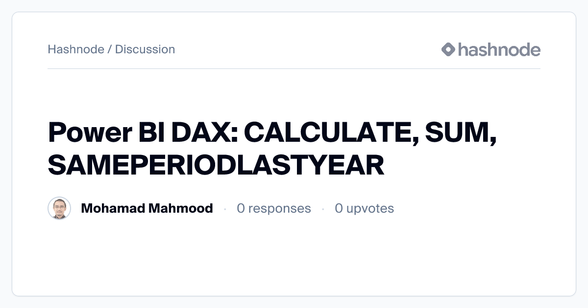Discussion on "Power BI DAX: CALCULATE, SUM, SAMEPERIODLASTYEAR" | Hashnode