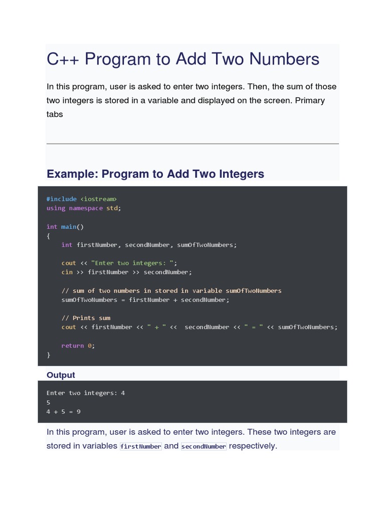 program to sum two numbers using (C++) with outputs. Fundamental ...